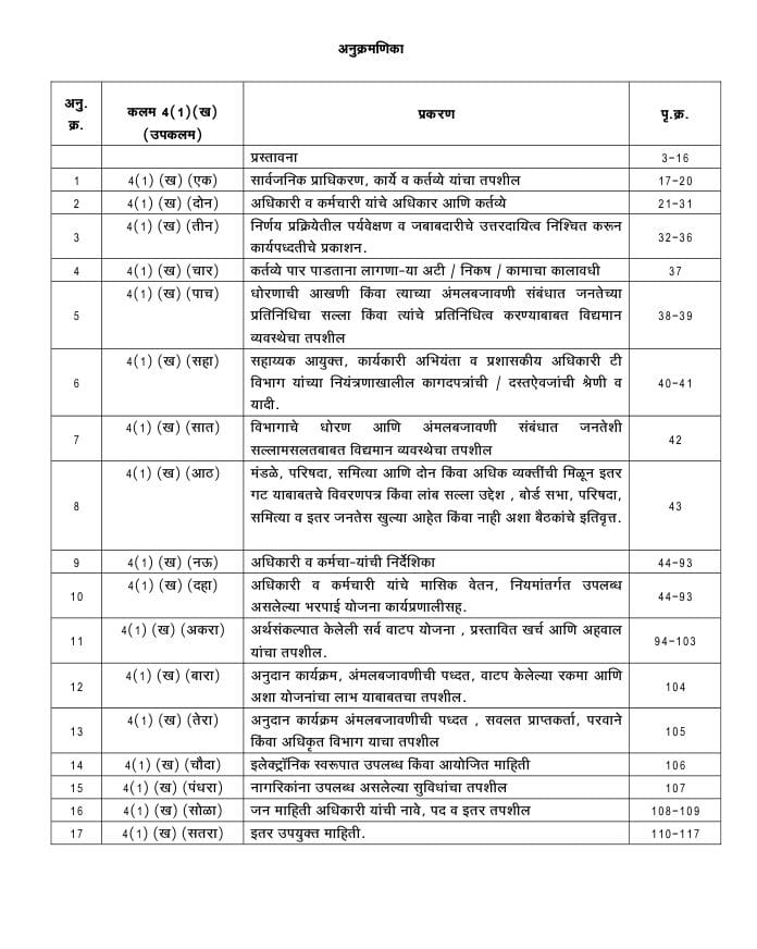 माहिती अधिकार कलम 4 (1) ख 1 ते १७ मुद्दे